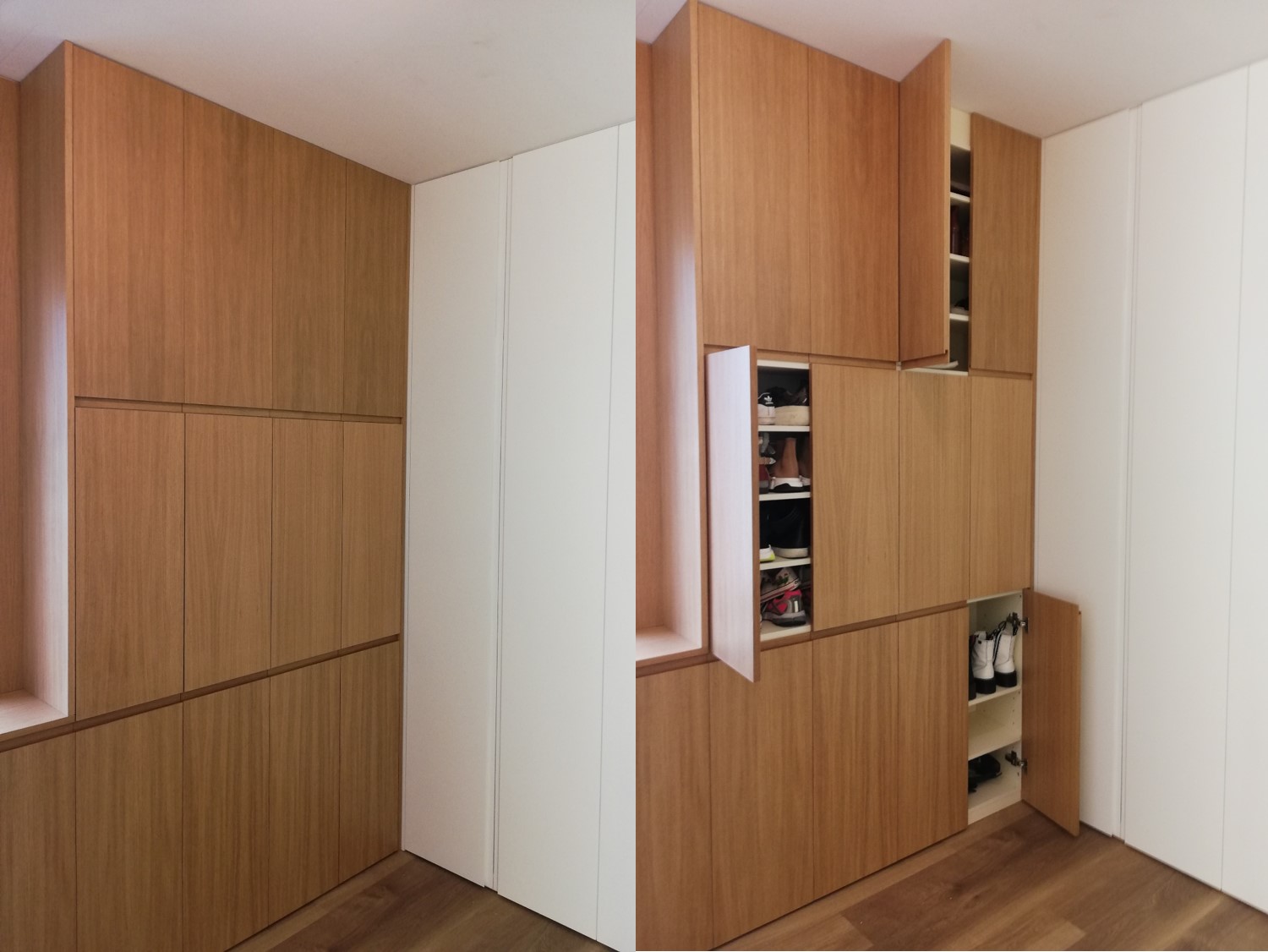 VESTIDOR ROCAUn espai de 3x3, configurant i integrant els mòduls d'armaris,sabater i mirall.Una composició volumétrica de dos materials i la llum natural, com element de joc cromàtic. Share CategoriesMobiliariTagsfusteriail·luminacióinteriorismemobiliariData:Març 2019